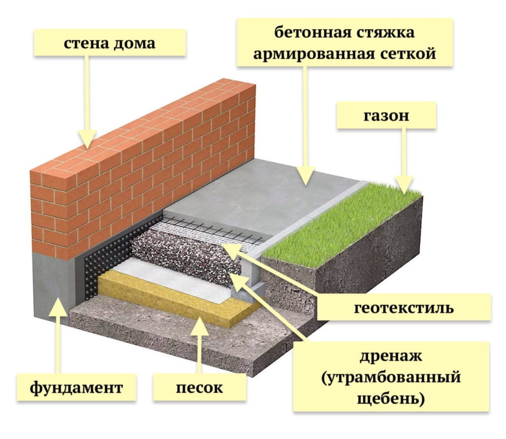 Устройство заливки вокруг дома по СНиП и ГОСТ