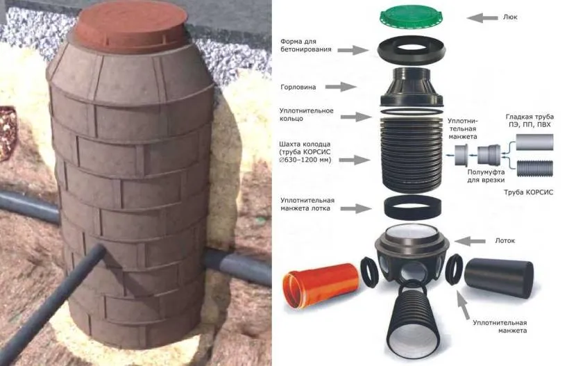 Устройство пластикового канализационного колодца для воды