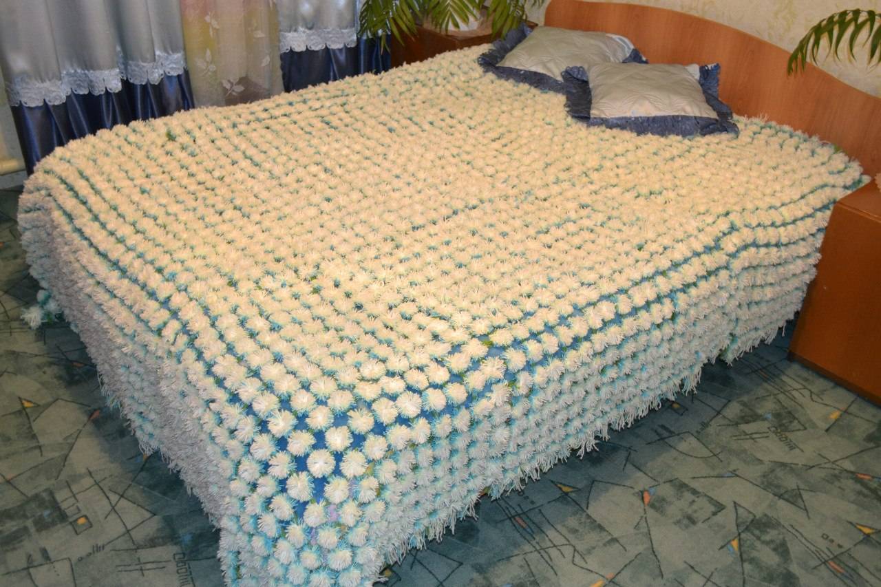 Каждое изделие уникально по-своему и имеет ряд достоинств. Плед из помпонов: