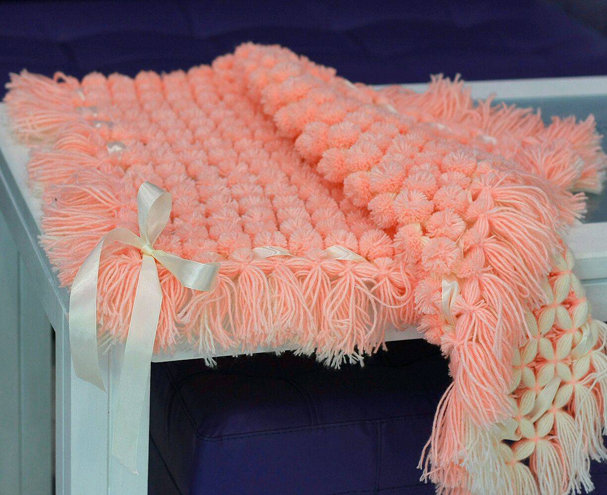 По желанию можно украсить края пледа не только кистями, но и помпонами.