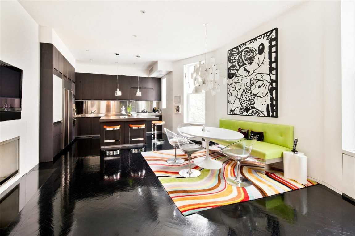 Если пол темный, то яркие акценты мебели и в декоре станут казаться ярче, более сочного цвета.
