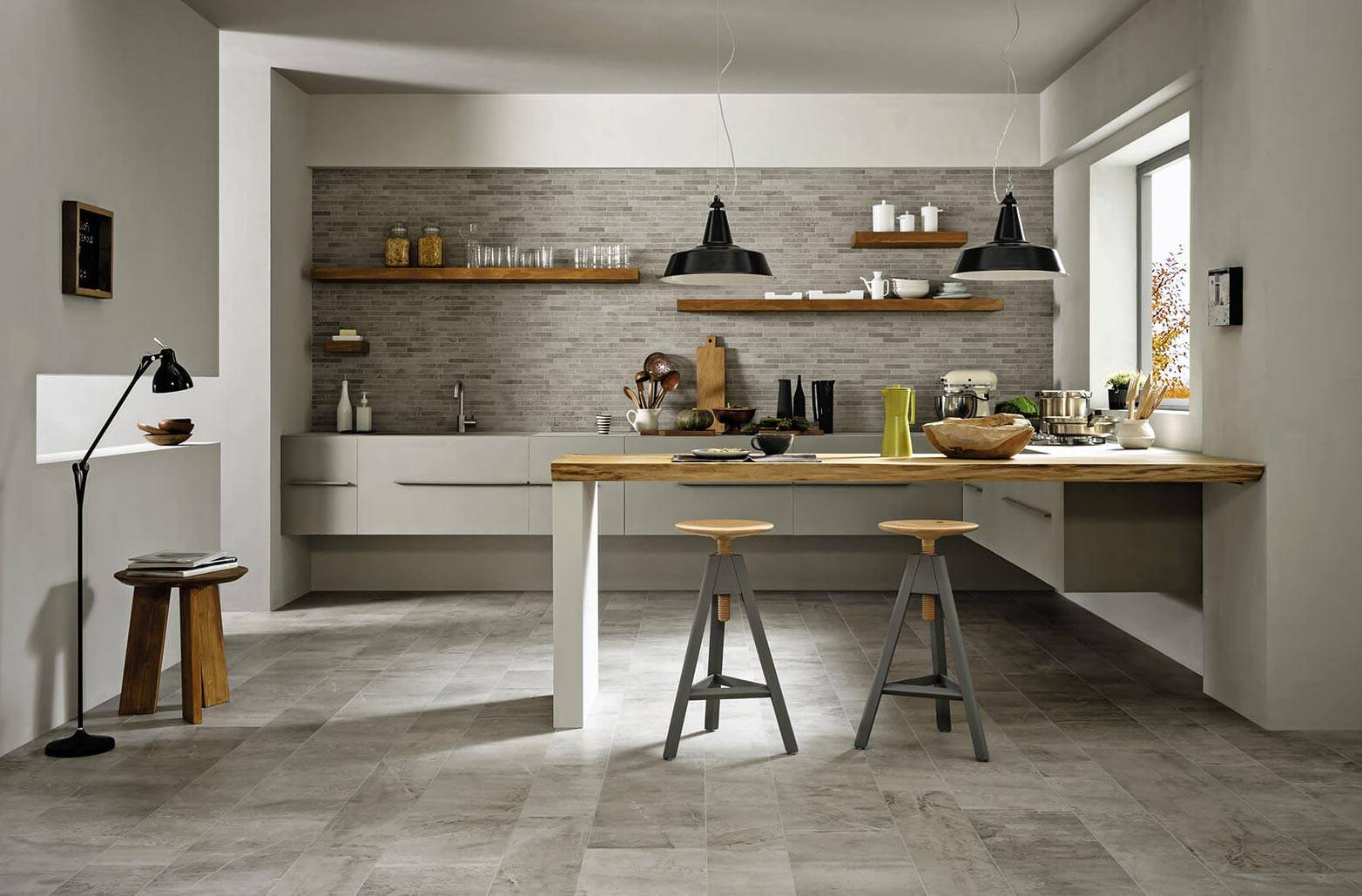 Кухня с серым полом