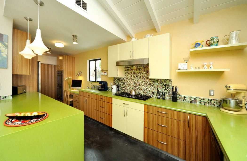 Дизайн интерьера кухни с использованием керамической плитки.