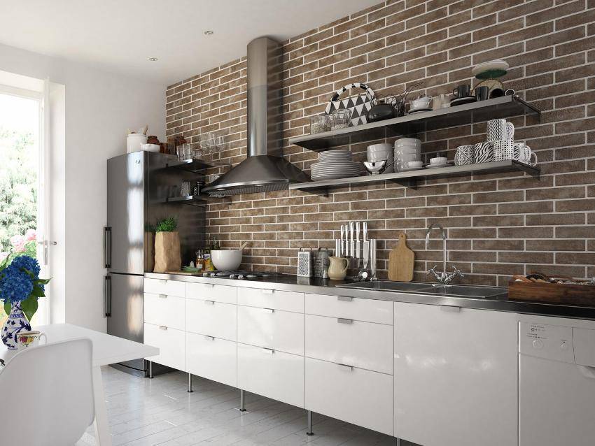 Независимо от того, для какого помещения выбирается плитка под кирпич — для кухни, гостиной или спальни, она в любом интерьере смотрится красиво и интересно. Широкий ассортимент позволяет выбрать любой вариант материала и не нарушить общее стилевое решение жилища – красная плитка, белый кирпич, черный клинкер и пр. Укладка также не является трудоемким процессом, что позволяет выполнить работу даже новичку.