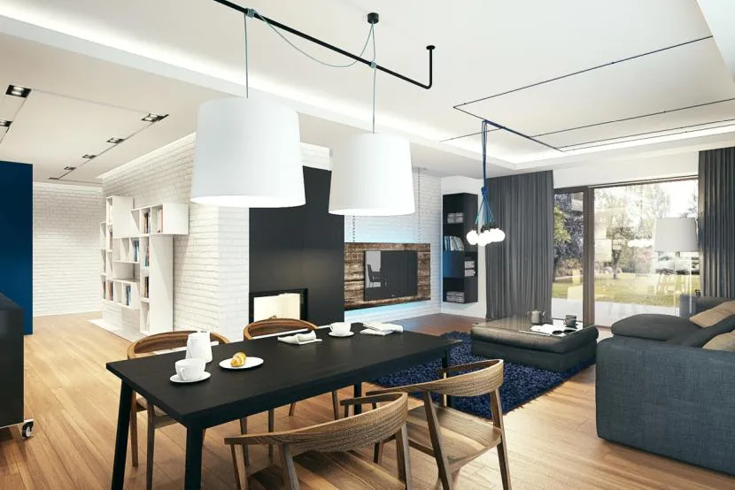 Хозяевам, размышляющим, как оформить обеденную зону на кухне, полезно обратить внимание на независимую подсветку. Лампа над столом не только зонирует помещение, но и делает его уютнее, а еду – аппетитнее (особенно, если выбрать лампу тёплого света). На выбор освещения влияет размер стола и его расположение; распространены следующие варианты: