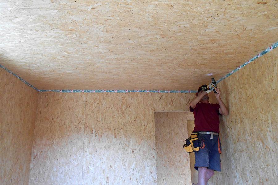 Простая технология монтажа потолка из ОСБ плит не требует приобретения дорогостоящих инструментов и специальных знаний в области строительства