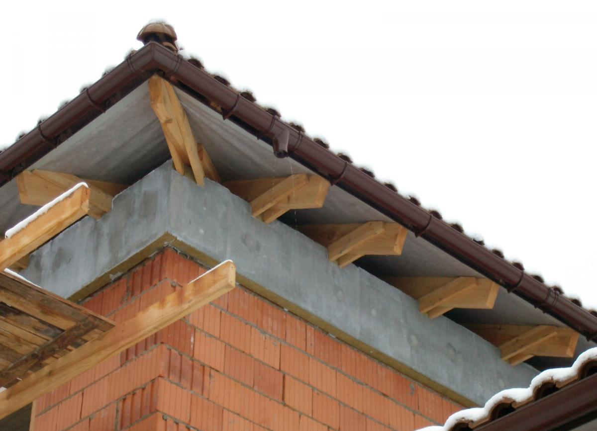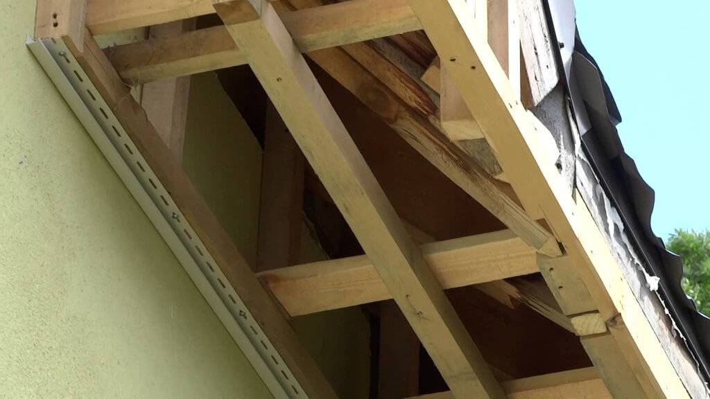 Суть состоит в том, что несущий брус закрепляется на обрешетке стропильной системы, становясь каркасом для кровельного покрытия и подшивки. После ее выполнения проводится монтаж водостоков. Ширина конструкции определяется статистикой осадков. Чем выше этот показатель, тем больше делается вынос.