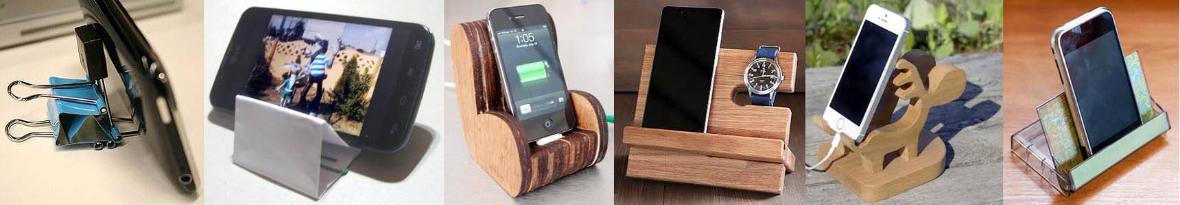 Подставка под телефон – низкотехнологичное изделие, но, к сожалению, возможности пластикового литья и металлообработки в домашних условиях крайне ограничены. Поэтому далее мы рассмотрим, как быстро и просто самостоятельно сделать держатель смартфона на стол дома или в офисе, а также подвесной для зарядки и штатив для фотосъемки; автомобильные, носимые, нательные/наручные и др. специальные держатели все-таки требуют применения промышленных технологий, а самоделками подобного рода можно подпортить аппарат до негарантийности.