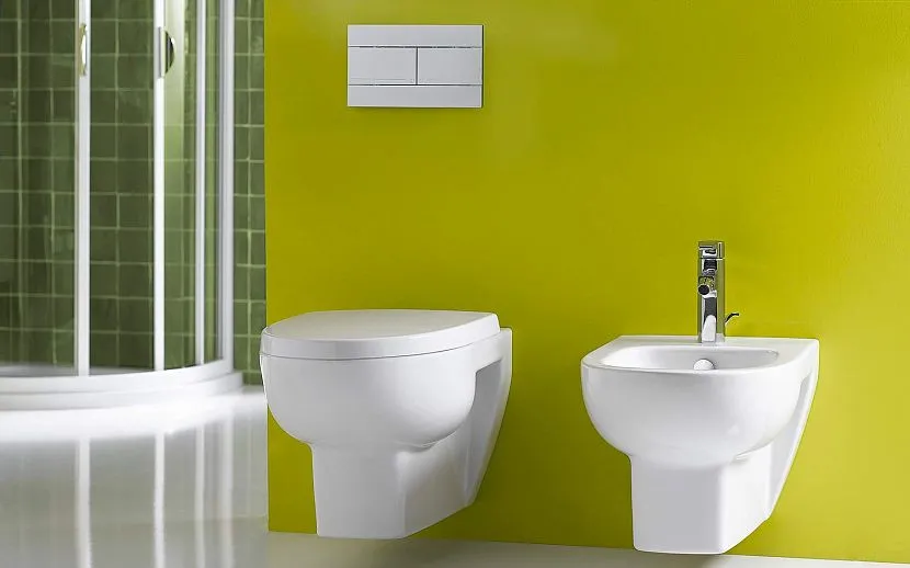Два унитаза на фоне салатовой стеныИсточник О ванной.Ру