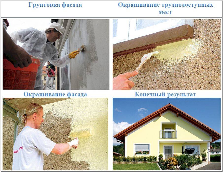 После высыхания базы поверхность грунтуют и наносят фасадную краску или штукатурку.
