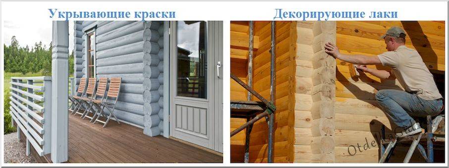 Старые деревянные дома обычно красят цветными укрывающими составами, в то время когда новый сруб лучше покрыть лаком для выявления красоты натурального дерева