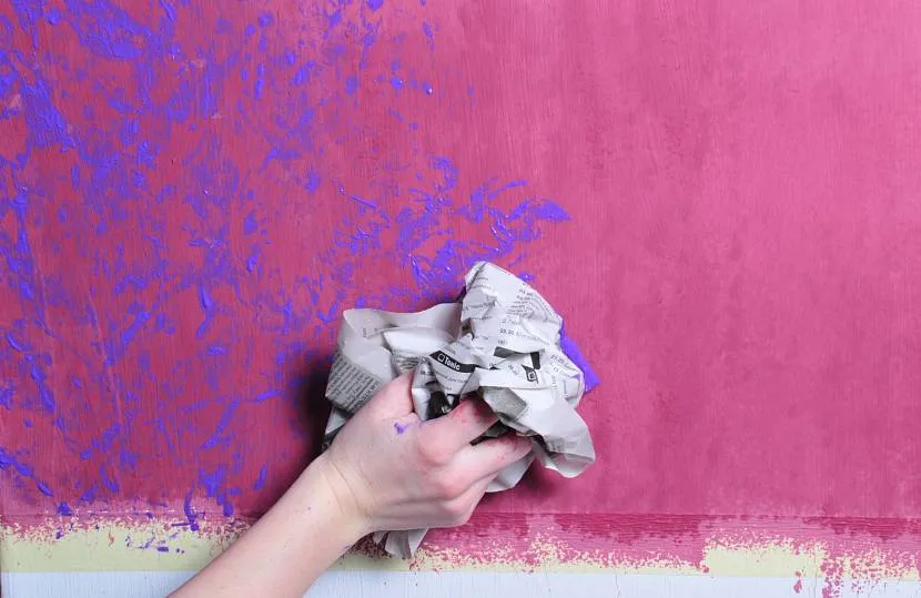 Важно предварительно подготовить цветную основу, после чего подобрать оттенок темнее или светлее. С помощью скомканной газеты получается очень эффектная и примечательная структура. Рационально подбирать для этой цели теплые или нейтральные тона.