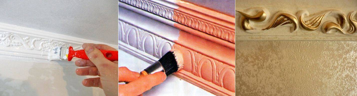 Дополнительная обработка потолочного плинтуса — окраска
