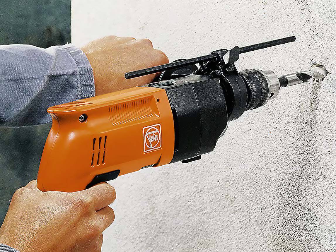Чтобы просверлить в твердой бетонной поверхности отверстие, нужен перфоратор. Работа должна выполняться с помощью специального сверла по бетону, диаметр которого подбирают по размеру дюбеля. Глубина отверстия должна совпадать с длиной крепежа.