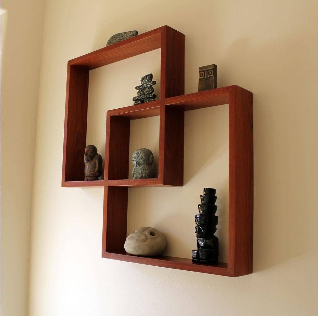 Еще один вариант из разных прямоугольников и квадратов, да еще и покрашенный в яркие контрастные цвета. Мимо не пройдешь Очень интересная идея использования углов для небольших полочек