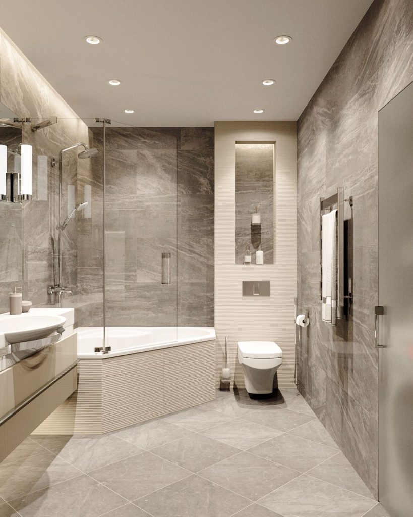 Подобрать по своему вкусу цвет комнаты, и отталкиваясь от этого продумать основное освещение и расположение одиночных светильников. После виртуального проекта можно переходить к реальному. Для этого надо пройтись по магазинам и подобрать или найти такие же элементы и аксессуары для ванной и туалета, которые были выбраны в интернете.