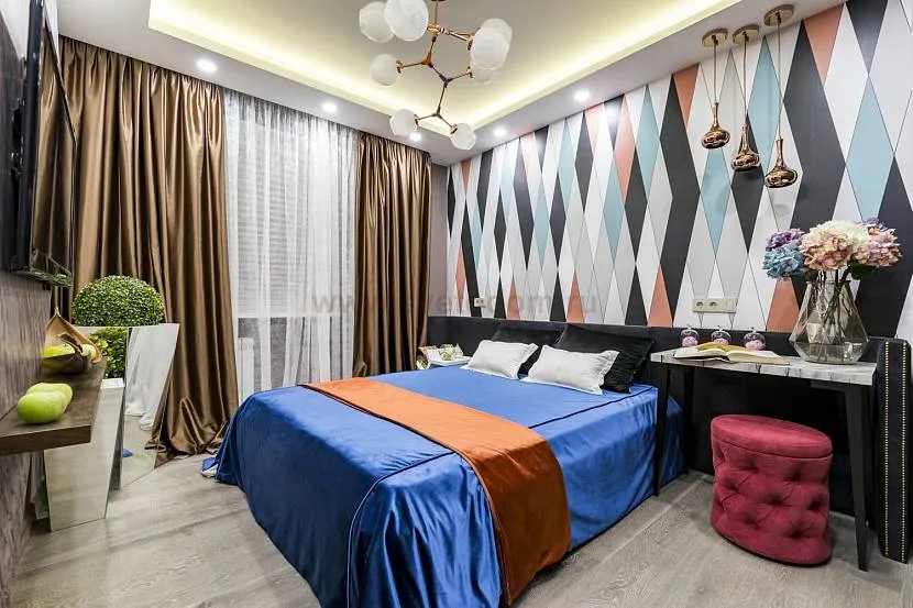 - такой тип идеально подойдет для интерьера комнаты отдыха в малогабаритных квартирах, например, типа хрущевка, поскольку они имеют низкие потолки и небольшую по площади спальню не более 10-15 кв. м.;