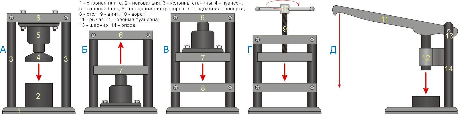 Разработка чертежа вашего будущего самодельного пресса начинается с того, что решается вопрос о том, по какой схеме он будет работать. Здесь есть всего два варианта.