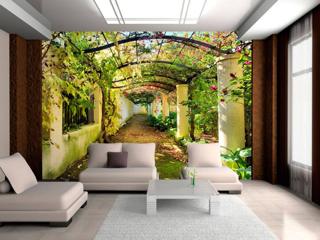 Не стоит забывать и про стиль помещения. Так, например, стиль хай тек в гостиной не сможет гармонировать с изображением макового или ромашкового поля на одной из стен. Необычные цветы или березовая роща прекрасно дополнять стиль кантри.