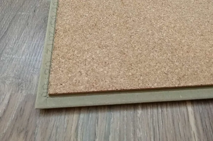 Замковое покрытие. Одним из самых современных решений является пробковый ламинат, который выпускается известными строительными брендами и приобрел популярность среди пользователей во всем мире. Как и панели из ламината, такое изделие имеет в своей основе несколько слоев. Самый нижний лист представляет собой агломерат пробки, а верхний является шпоном. В средней части расположена плита МДФ, которая отвечает за прочность и упругость изделия. Материал не боится воздействия влаги, устойчив к температурным колебаниям и обладает хорошей теплоизоляцией. Закрепляются такие плиты с помощью замкового соединения типа Click. В процессе эксплуатации подобных изделий выяснилось, что МДФ склонна к впитыванию влаги, из-за чего материал теряет форму и разрушает таким образом установленные замки. Производители учитывают эти данные, поэтому в последнее время появились новые продукты с плитами из ПВХ и кварца в составе. Такие изделия способны свободно переносить контакт с жидкостями и нормально реагируют на повышенную влажность в помещении. Но недостатком данного решения является возросшая стоимость панелей.