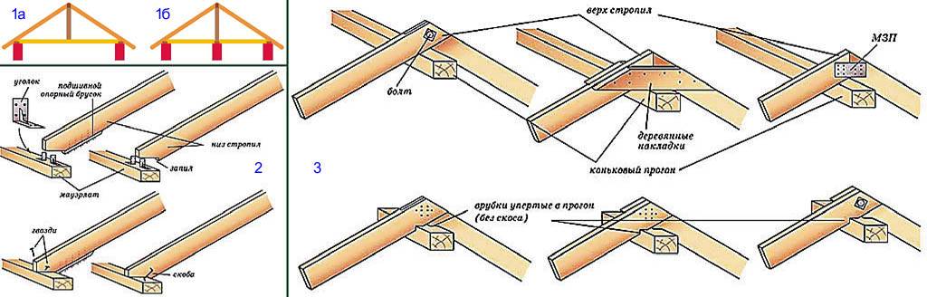 Стропильные конструкции (в данном случае это тот же ригель крыши) бывают, как известно, висячими (поз. 1а на рис.) и наслонными (поз. 1б):