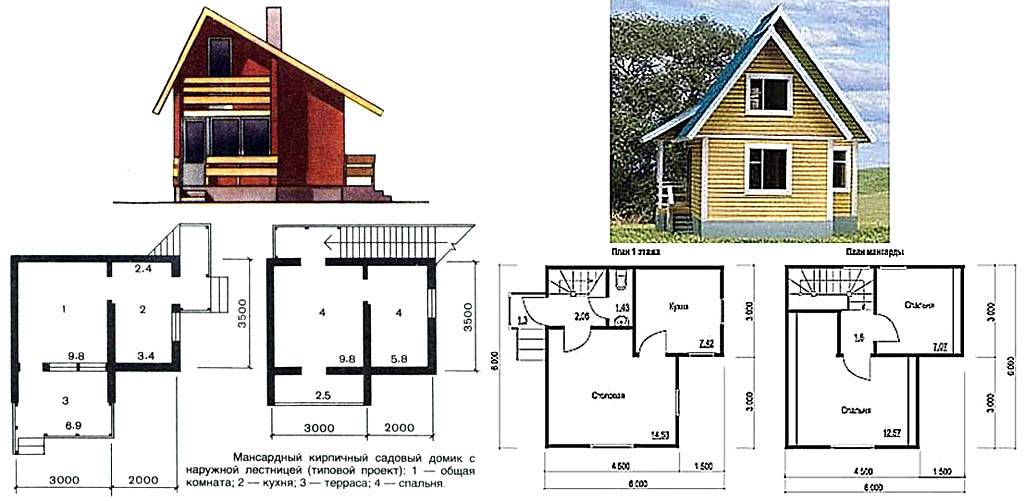 Недорогой садовый и/или компактный загородный домик лучше строить по типовому проекту; о существенных подробностях строительства см. далее. Готовый бесплатный проект дачного домика вполне несложно найти с помощью любого поисковика. Или за плату — подробный типовой проект садового домика за 300 руб. найти реально на соответствующих сайтах.