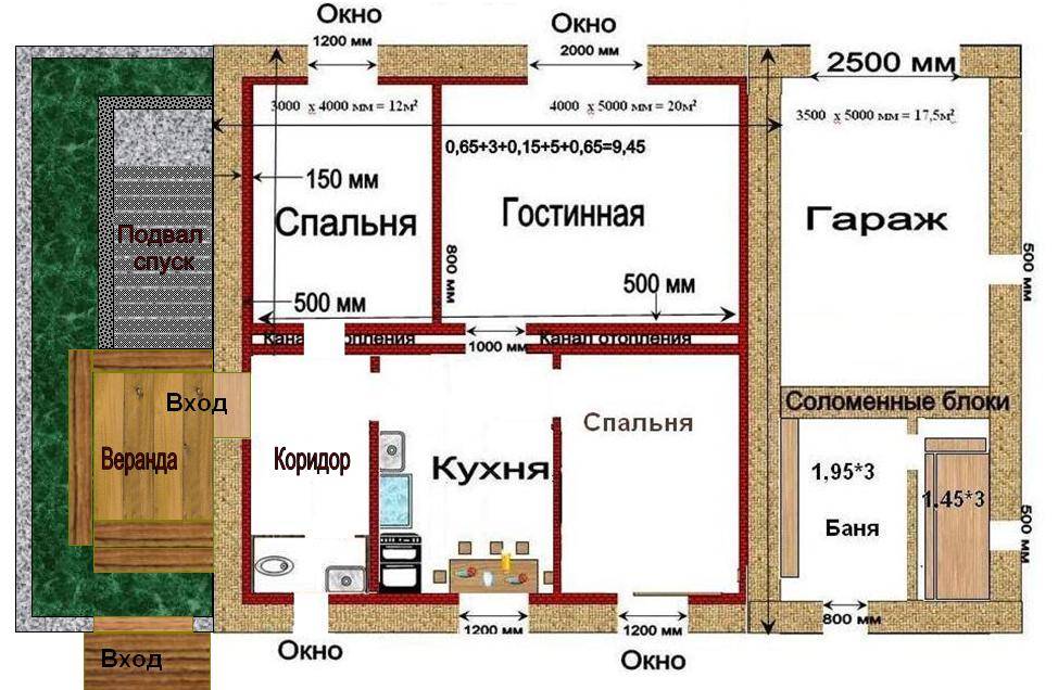 - Компактностью сооружения. Вполне достаточно предусмотреть 11 кв. м на каждого домочадца плюс площадь санузлов, коридоров, комнат общего пользования.