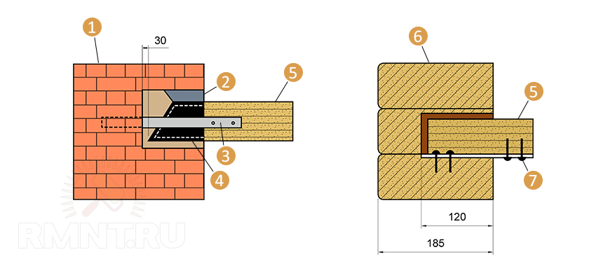В зависимости от конструкции и материала несущих стен деревянные балки крепятся: