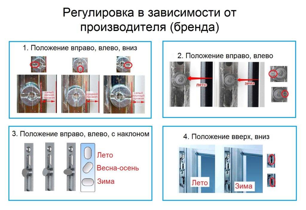 Диапазон регулировок находится в пределах 1-2 мм. Допускается более или менее сильный прижим створки в разное время года — летом можно её ослабить, а зимой затянуть сильнее. Делается это для обеспечения подачи воздуха — в летнее время будет проходить больше воздуха, а в зимнее — меньше.