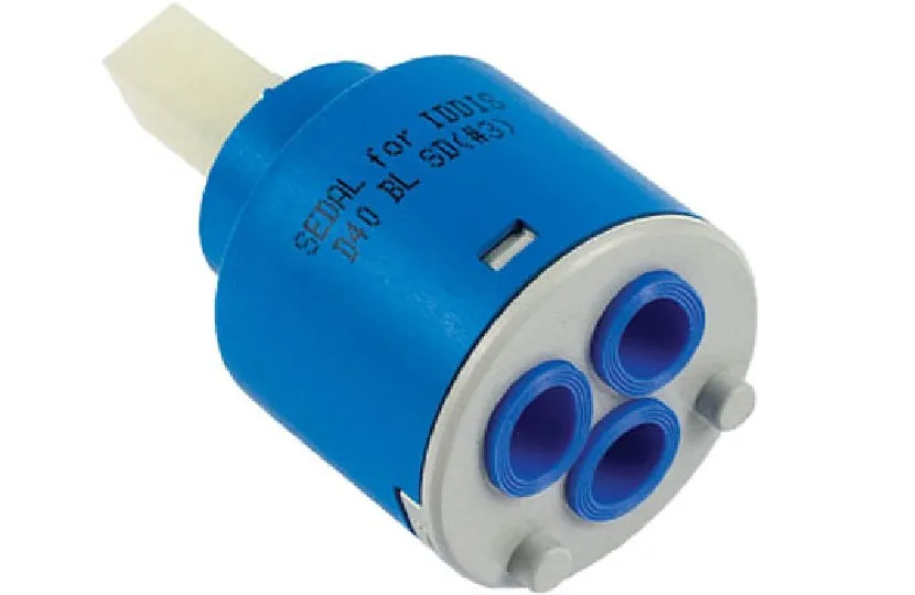 Роль шарика здесь выполняет картридж. В качестве его основы служат две керамические пластины. Нижняя часть картриджа имеет три отверстия для воды, а верхняя — её смешивает.
