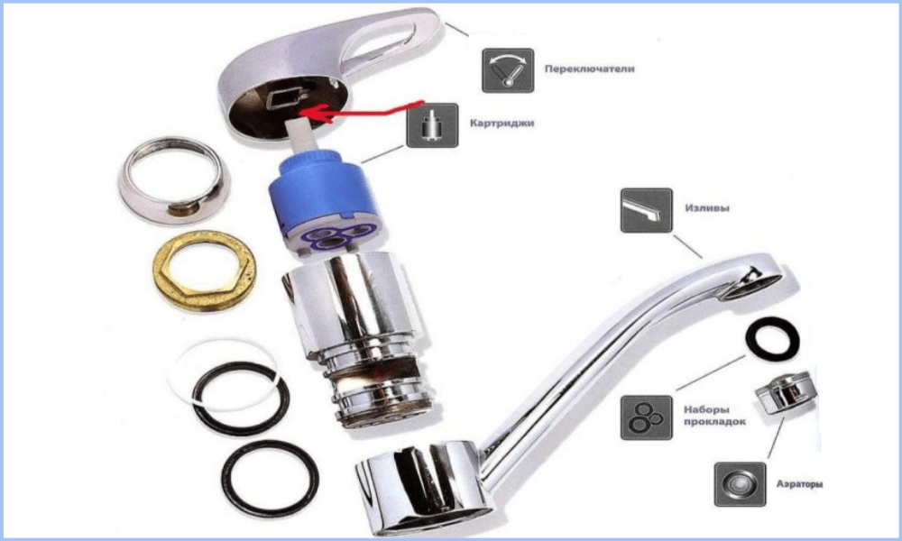 У однорычажного смесителя с пластиковым картриджем чаще встречаются следующие неисправности: