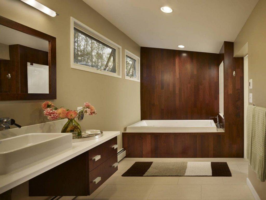 - Теплая влажная ванная – благоприятная среда для размножения микроорганизмов. Поэтому способы отделки наподобие гипсокартона на обрешетке не рассматриваются: любая глухая полость в стене рано или поздно станет рассадником заразы.