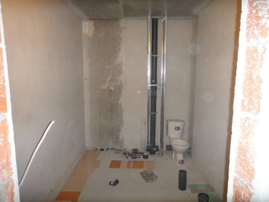- Для начала необходимо всё убрать из помещения, оставив при этом водоотвод и стояк канализации.
