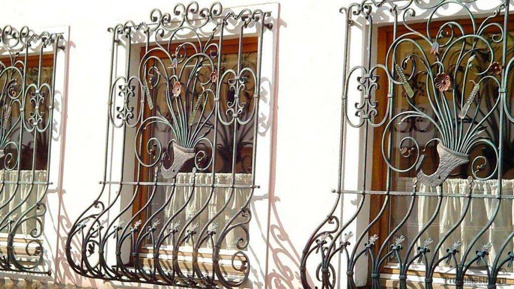 Объемные решетки могут иметь выступающую часть как снизу, так и сверху, либо быть выпуклыми посредине. Такие конструкции наиболее красивы и функциональны. К примеры, выступание в нижней части можно использовать для размещения цветочных горшков. Более объемная верхняя часть даст возможность хоть немного приоткрыть форточку или все окно, если вдруг створки открываются наружу.
