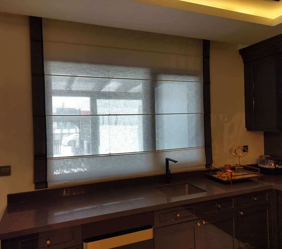 износостойкость и практичность материала. Римские шторы на кухне – идеальный вариант не