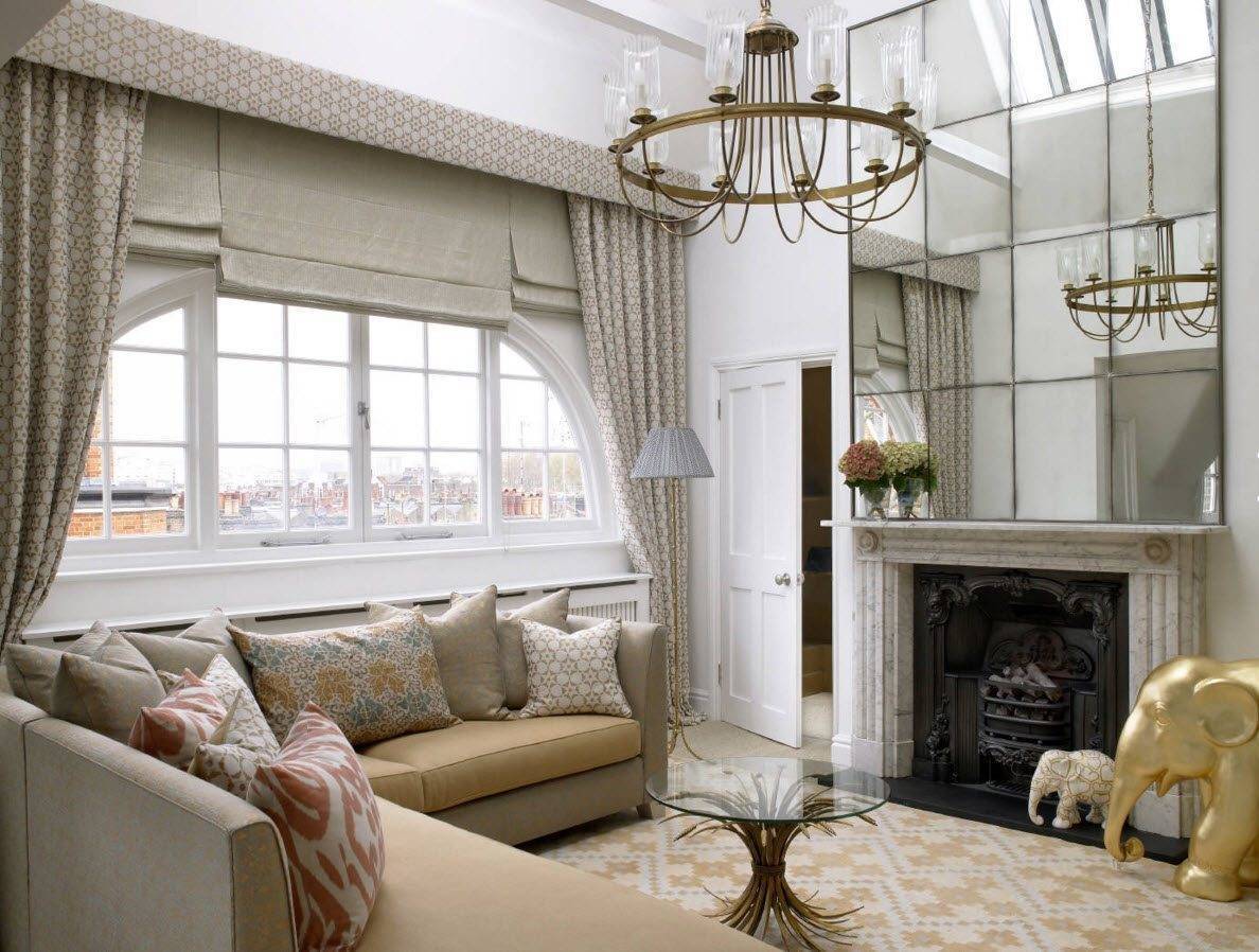 Отдельно стоит упомянуть эркерные окна. Их оформить совсем непросто. Один из вариантов — римская штора на каждое окно. Так как монтаж очень простой, никаких сложностей не возникнет. Единственная трудность — надо будет открывать и закрывать все шторы, а это занимает время, да еще со временем начинает раздражать.