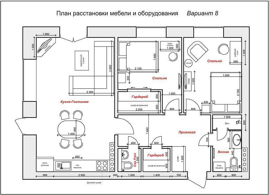 - Расположение мебели. Продумайте, где будут стоять предметы обстановки – например, размещение кухонного гарнитура напрямую связано с доступом к розеткам. Чем тщательнее спланируете интерьер, тем выше уровень комфорта.