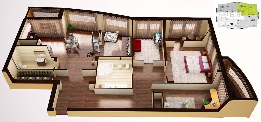 - отделку стен, потолков и полов. В этой части проекта также подбирается дизайн оформления стен и окон, других деталей жилья;