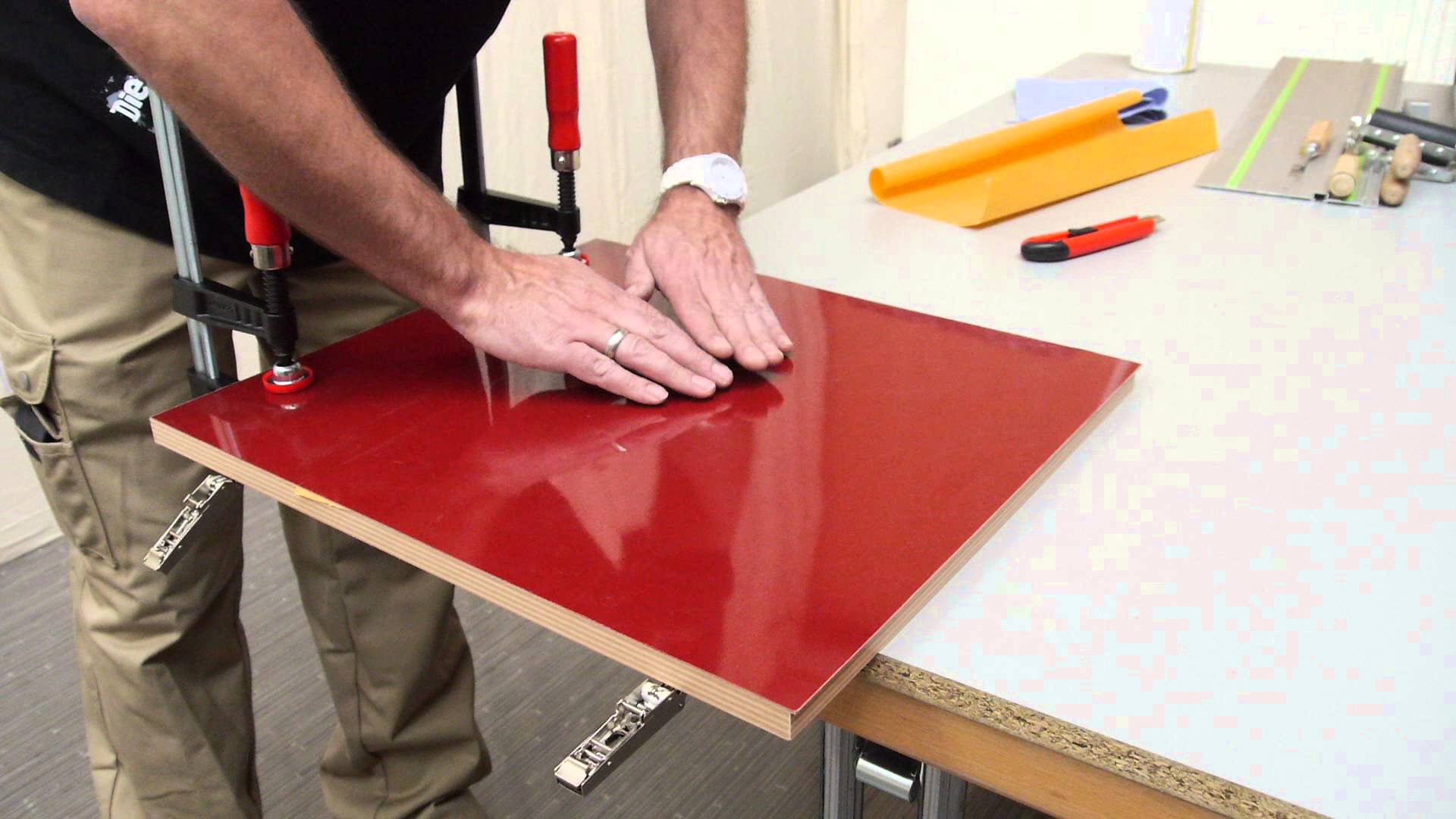 Используйте профессиональные инструменты для оклеивания поверхности мебели.