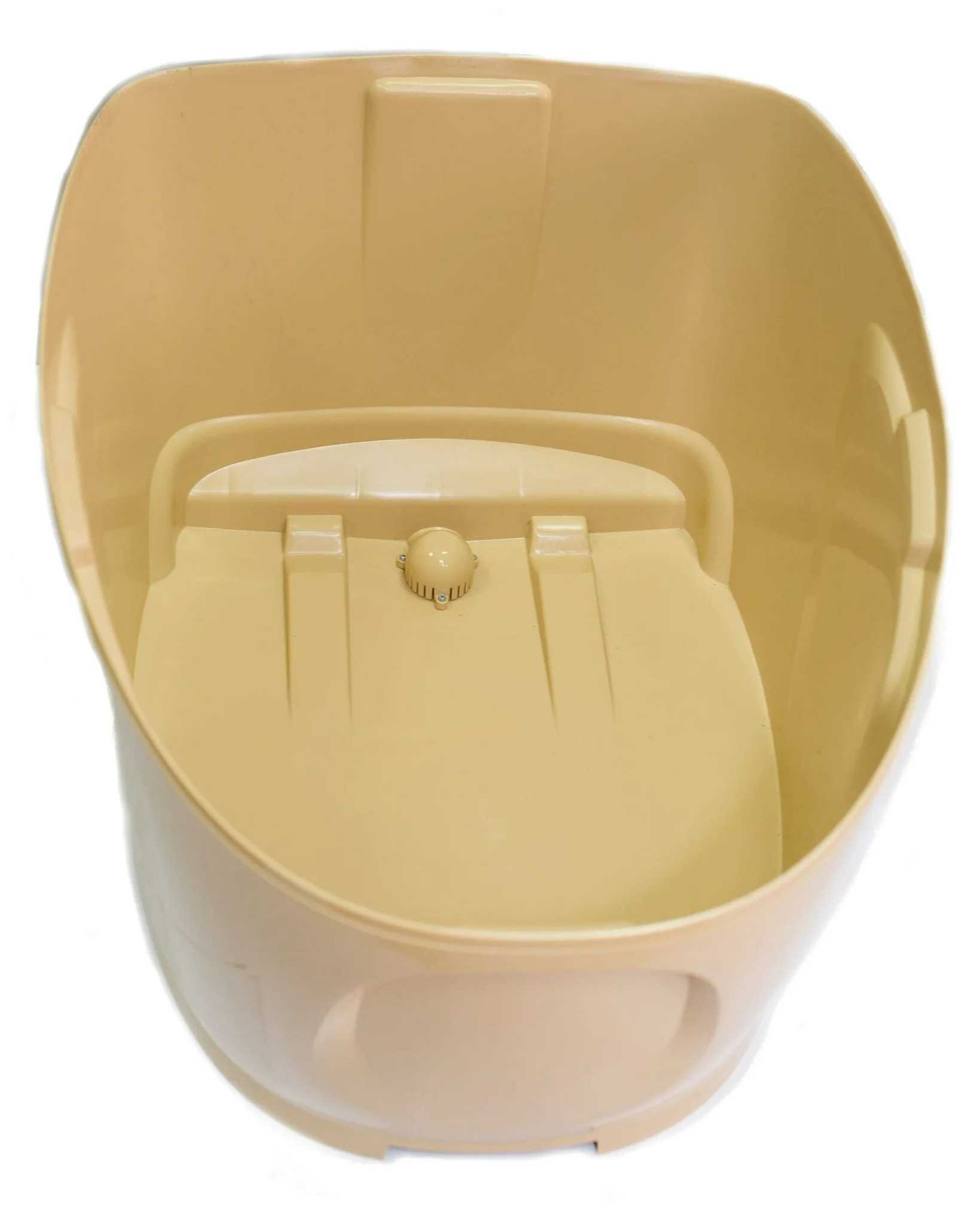 Объем верхнего бака с чистой водой составляет 12 л. Наличие удобной ручки упрощает процесс опорожнения нижнего бака с отходами. Отсутствие сторонних запахов. Устройство обладает способностью выдерживать нагрузку до 120 кг.