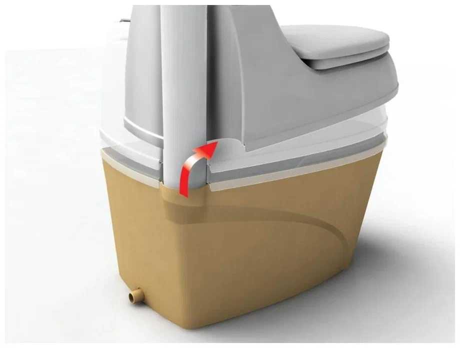 Удобство эксплуатации обеспечивается наличием ручки, расположенной на нижнем баке. Конструкция оснащена уровнем индикации наполненности нижнего бака, что упрощает процесс использования туалетом. Сторонние запахи не просачиваются наружу даже при максимальной наполненности нижнего бака.