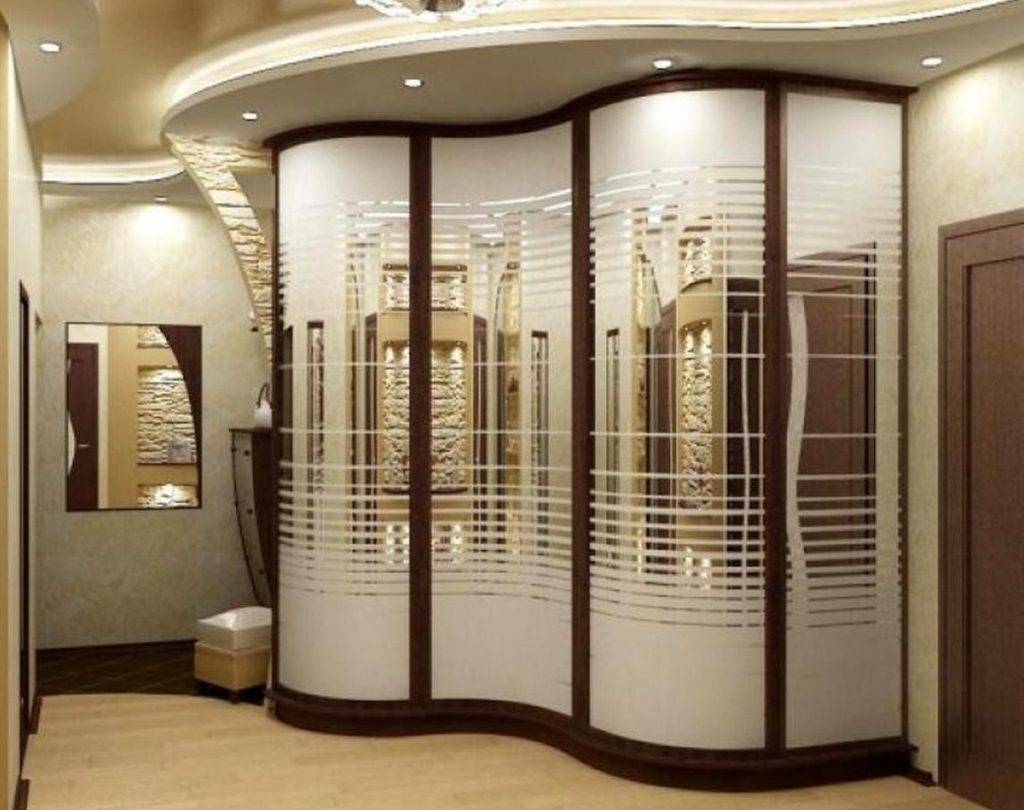 В необычных радиусных формах поверхности шкафа изготавливаются округлыми, вогнутыми или ассиметричными, что вносит определенную изюминку в любую прихожую