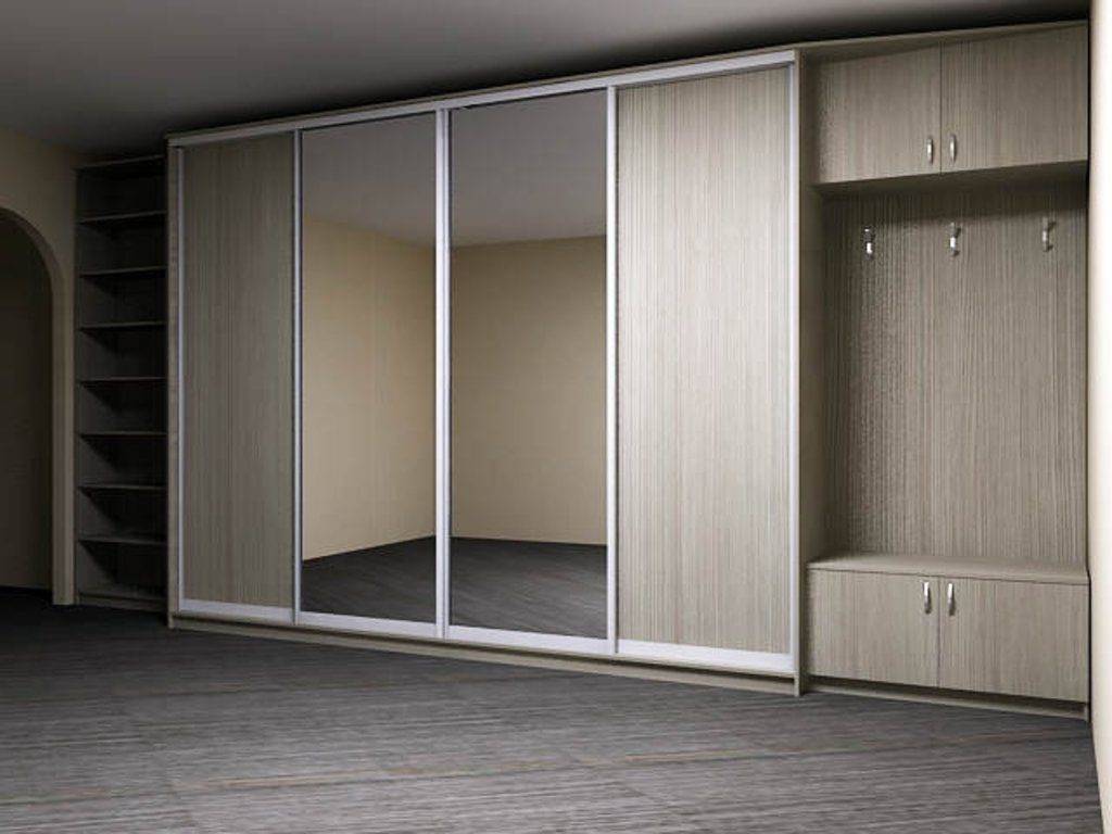 Наиболее популярны встраиваемые шкафы-купе с зеркалом. Они устанавливаются до самого потолка, а зеркало на створке увеличивает пространство прихожей. Это является достоинством данной модели. Недостаток в том, что его нельзя перенести.