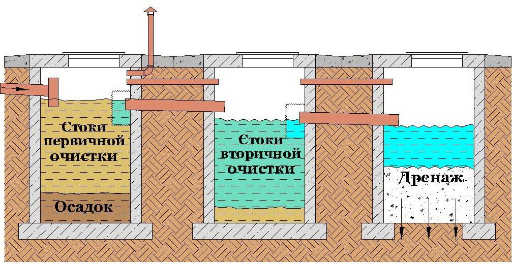 Количество камер, где происходит разложение стоков, у большинства заводских моделей с анаэробной очисткой не менее двух. А станций биологической очистки их может быть еще больше.