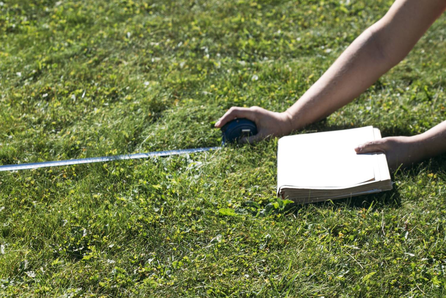 - Затем вооружаемся рулеткой, чтобы измерить длину и ширину участка. Достаточно измерить лишь две стороны, т.к. две другие будут одинаковыми по размеру.
