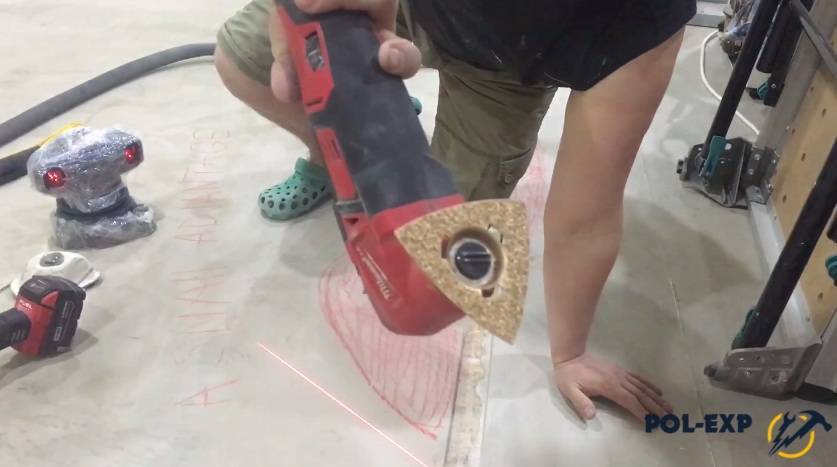 Проводят его при помощи болгарки или же реноватором – проводят работы на следующий день после проведения всей заливки