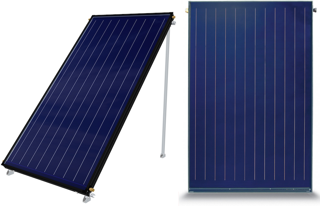 Популярные и бюджетные по расценкам устройства. Состоят из плоскостной светочувствительной пластины, соединенной с теплопроводящими трубами, стеклянного покрытия, теплоизоляции и металлической рамы. Пластина поглощает солнечный свет и аккумулирует тепловую энергию, которая нагревает жидкость-теплоноситель. В отличие от других типов, теряют много поглощенного тепла. Неэффективны в пасмурную погоду. Повышенная влажность плохо сказывается на конструктивных деталях.