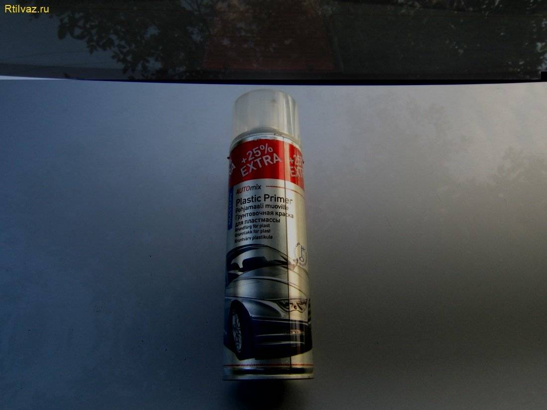 Перед тем как наносить шпаклёвку на бампер обрабатываем ремонтируемую часть плоскости правильно праймером по пластику.
