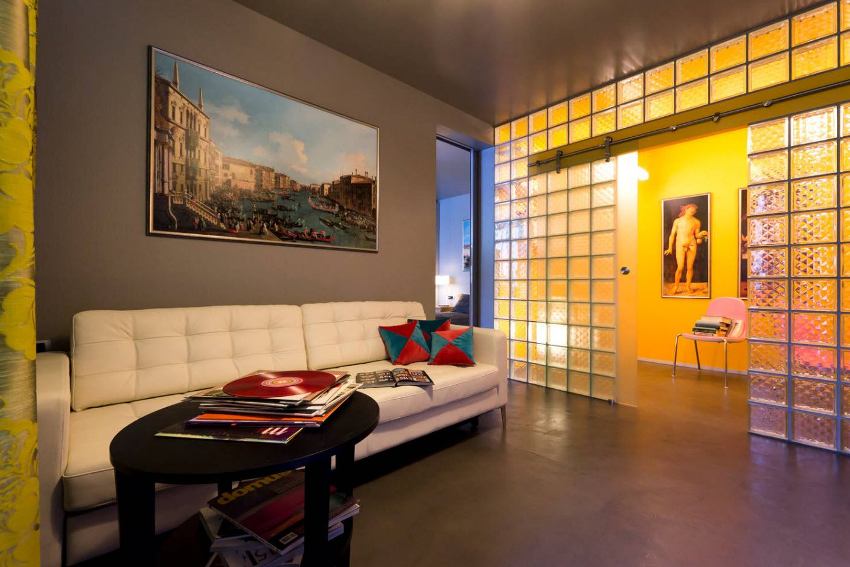 - Светопроницаемые прямоугольники и кубики отлично подходят для замены второстепенных стен и возведения перегородок;
