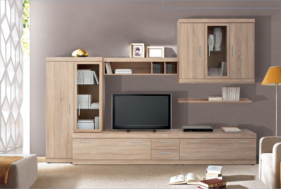 ДСП – это самый широко применяемый материал для изготовления мебели в гостиную. ДСП может иметь простую либо ламинированную поверхность.